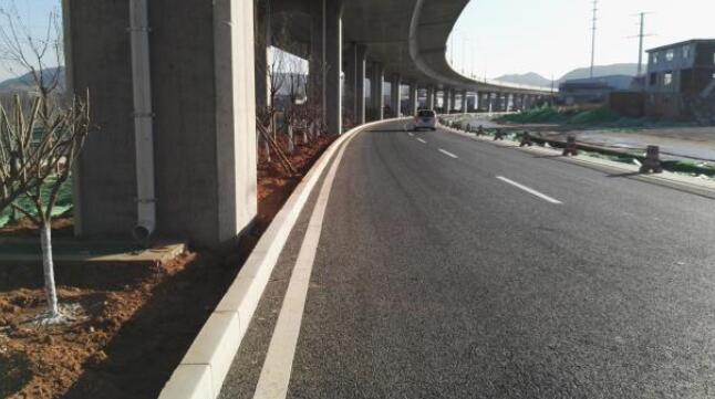 二、立沿石安裝通常在中粒式瀝青攤鋪后實(shí)施,二環(huán)西路南延三期工程在水穩(wěn)攤鋪完成后,利用水穩(wěn)養(yǎng)護(hù)時間安裝立沿石,縮短了工期,減少了開槽、瀝青切邊工序,同時節(jié)省了瀝青混合料用量。
