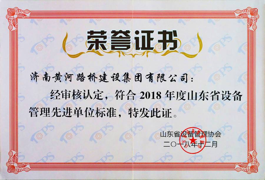 2018年山東省設(shè)備管理先進(jìn)標(biāo)