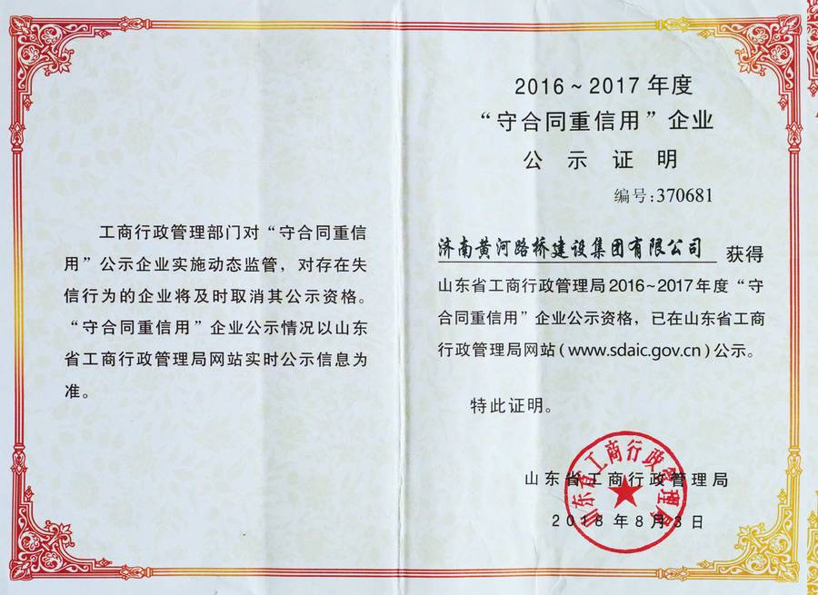 山東省 “守合同重信譽(yù)”企業(yè)(